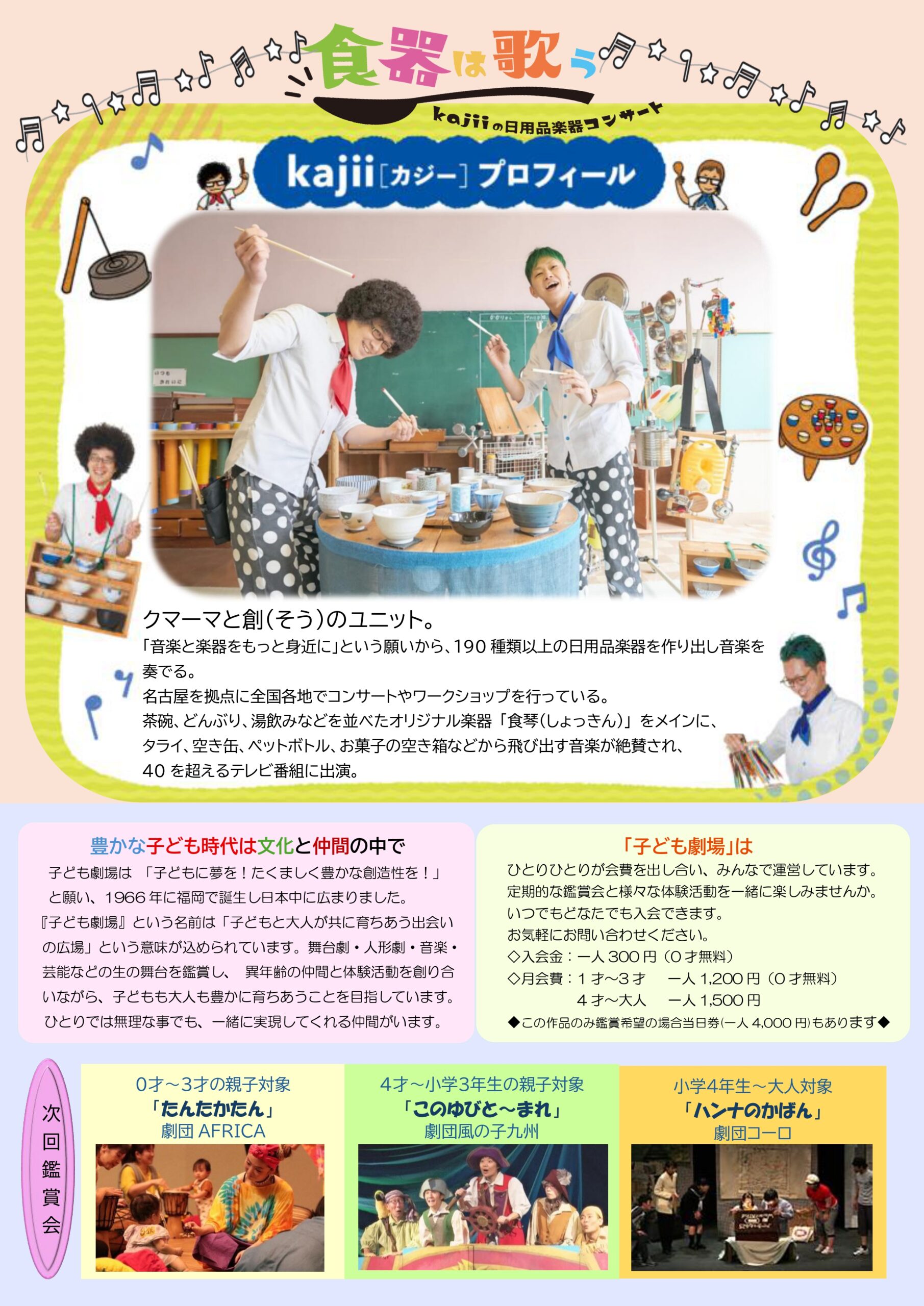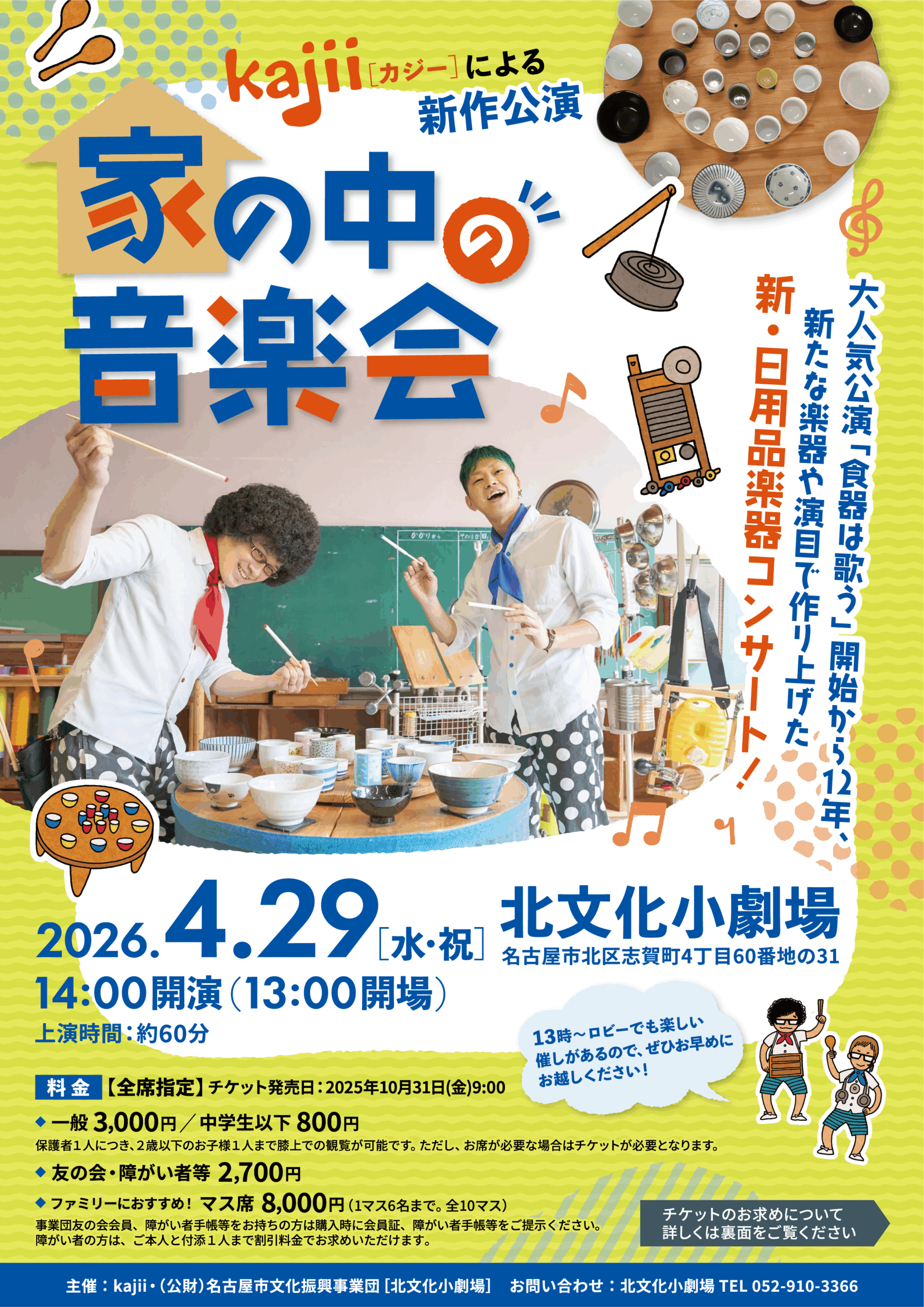 「家の中の音楽会」と題し、楽器や演目を一新した新作です。ぜひご予約お願いします!