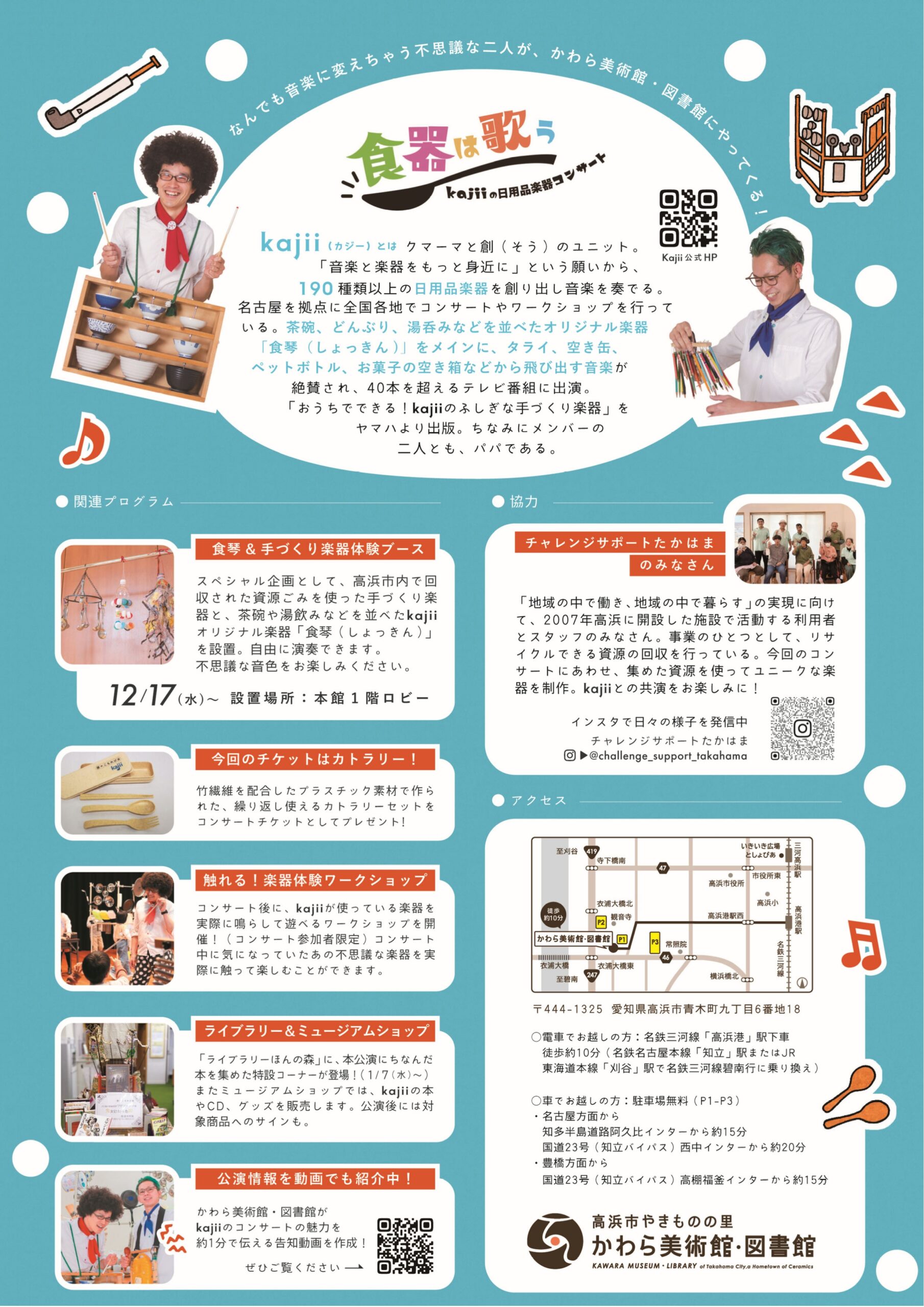 2/22 (日)愛知 高浜 かわら美術館 kajiiの日用品楽器コンサート