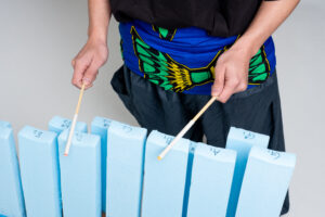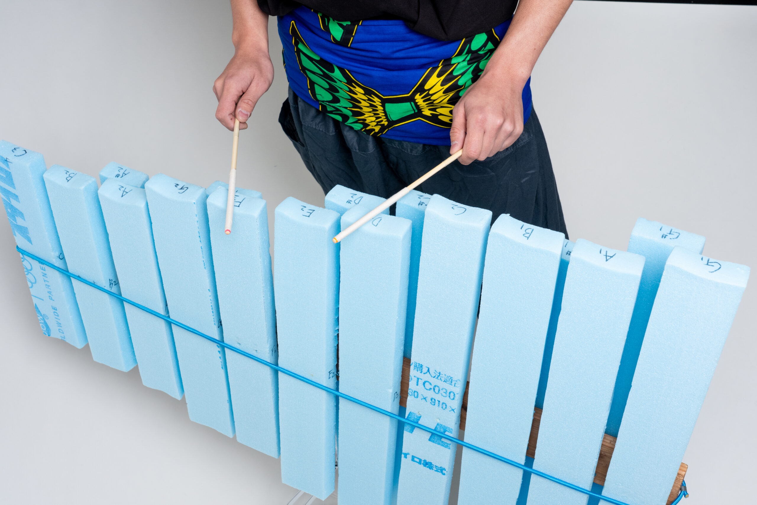 スタイロポンは音域を限界まで追求した結果、高さ2mあってそれを上から叩くという使いづらいものになってしまった。