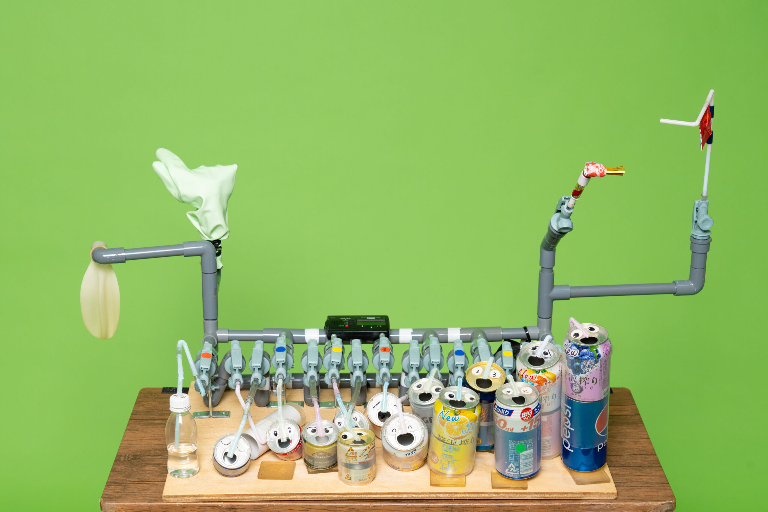 #127 オルカン 吹く楽器 2021.09.102026.02.19 制作:創 空き缶を使ったオルガンなのでオルカン。 アルミの空き缶は飲み口が薄く鋭く、笛にするのにちょうどいい。 音程を微調整するために、全ての缶は真ん中で割ってクリアファイルの筒で繋げてある。 【本人による音声解説(マニア向け)】 https://kajii.me/instruments/wp-content/uploads/2021/09/e27f22774b784da60e8f477587924d58.mp3
