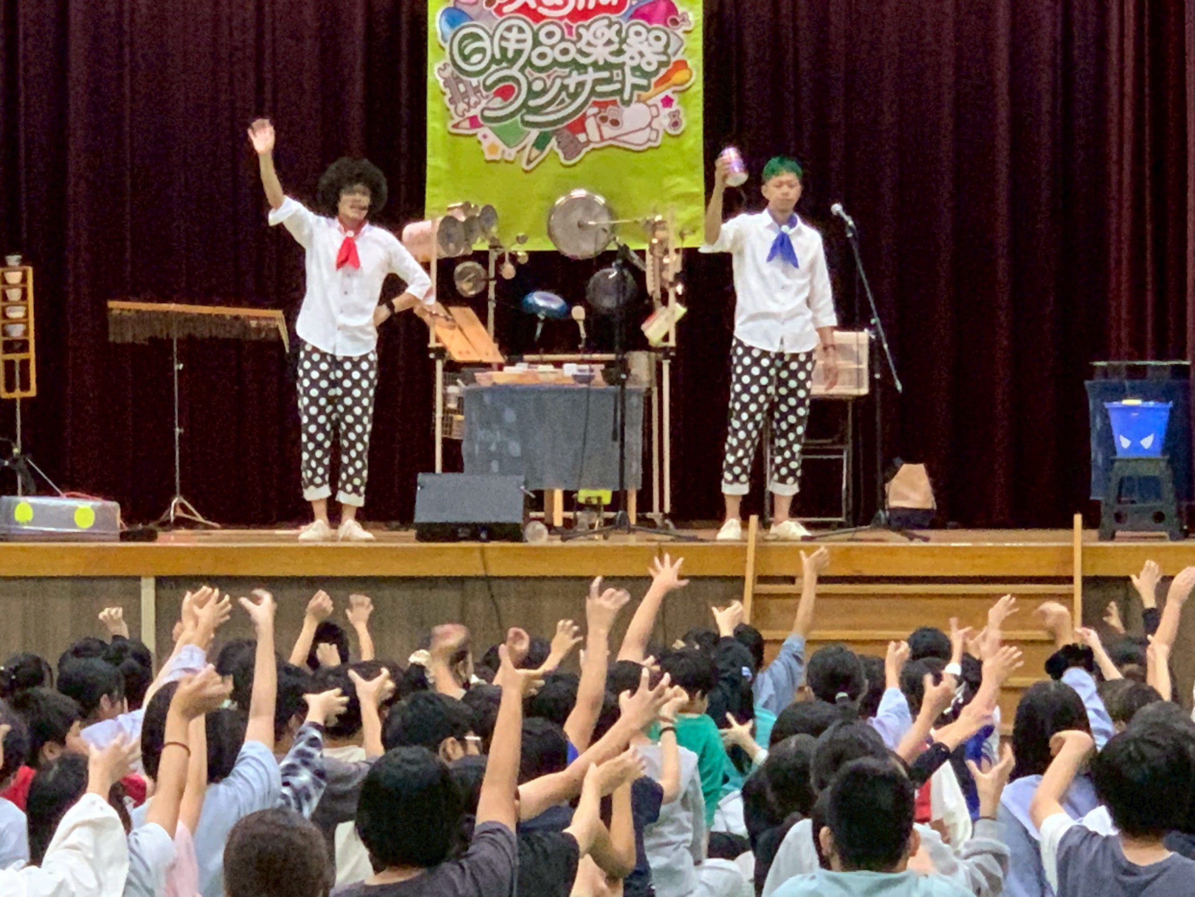 身近なものから生まれる驚きの音色、衝撃的な演奏に生徒さんはもちろん先生方までがビックリ。